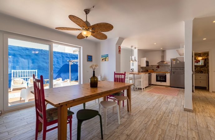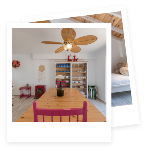 A modern fully equipped open kitchen is available for all guests communicates to the dining area, featured with a big table and lovely chairs restored by the owner, and all the facilities. The dining area flows into the living room in a perfect integration. There’s a wood stove for the raining days, a large tv and social games to entertain.